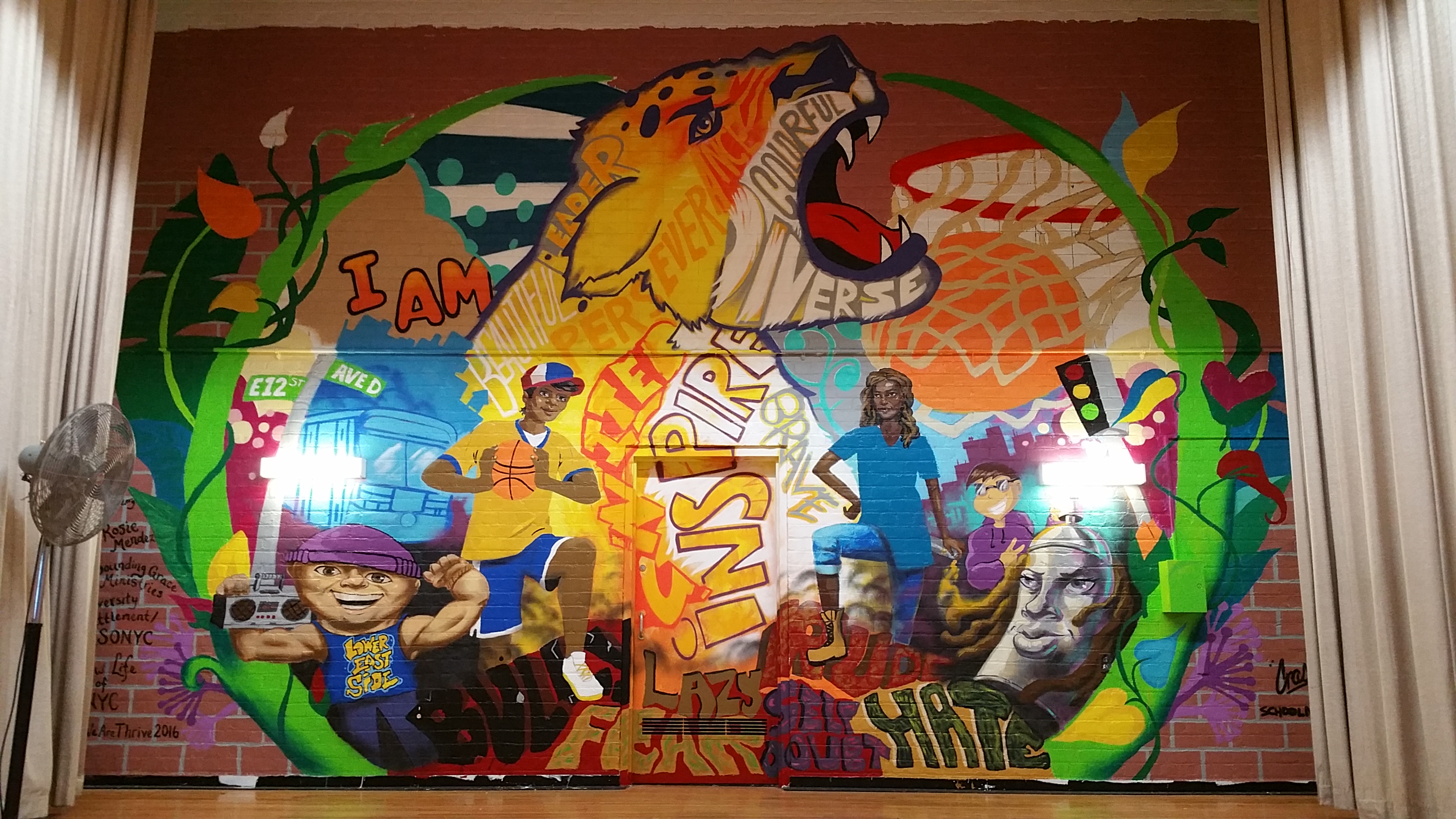 Photos are for illustrative purposes only. Four indoor projects; eight outdoor. Guest artists include Sonic, Daze, Crash, Kaves, and ADM. Photos online at Flickr; portfolios coming soon to SchoolMurals.org.