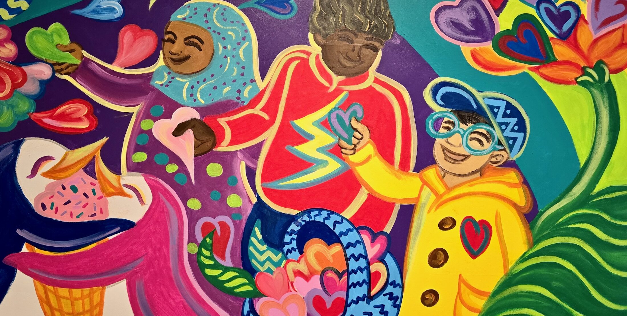 Garden of Love PS 182 Samantha Smith (2023) • Art Direction: Peach Tao • Contributing Artists: Miri Banana • 250 Square Feet • Mixed Media on Drywall • Sponsored by The Child Center of NY