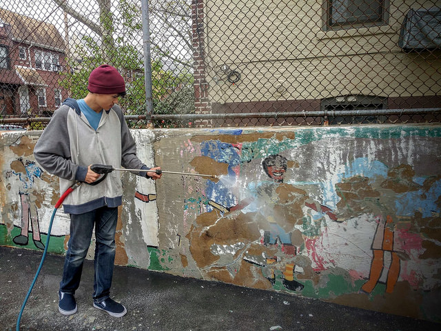 The program included age-appropriate, in-school and out-of-school instruction that developed mural and life skills such as design, image transfer, color mixing, painting, communication, teamwork, conflict resolution, resilience, and leadership. Throughout the projects, school alumni and other students earned community service volunteers hours. We celebrated the student work at the “We Are Thrive Experiential Art Exhibit” sponsored and hosted by the United Federation of Teachers on June 17th; and enjoyed a ribbon cutting celebration on June 16th.