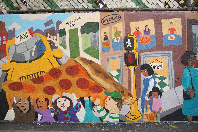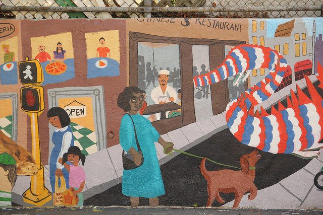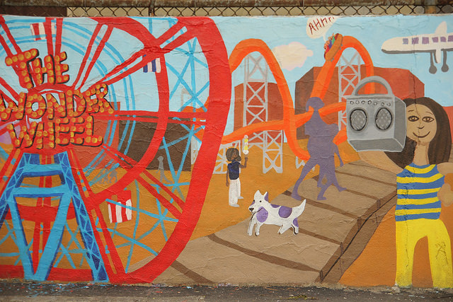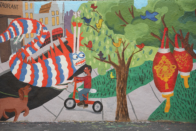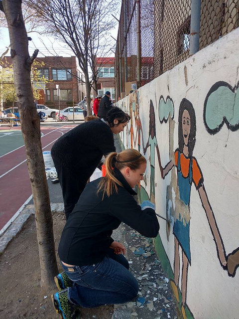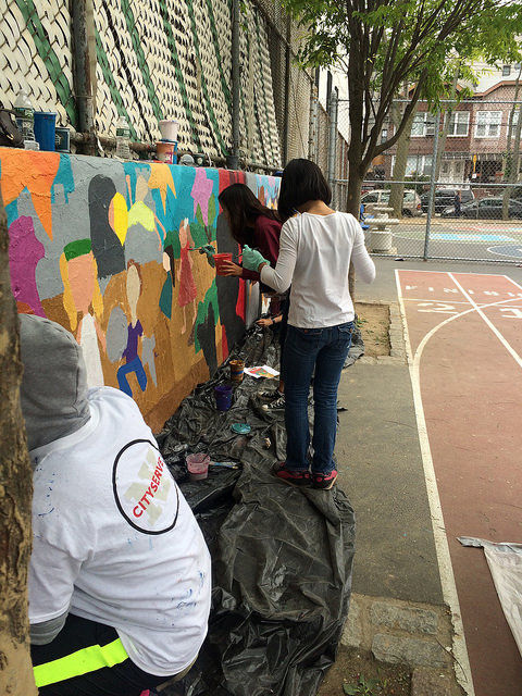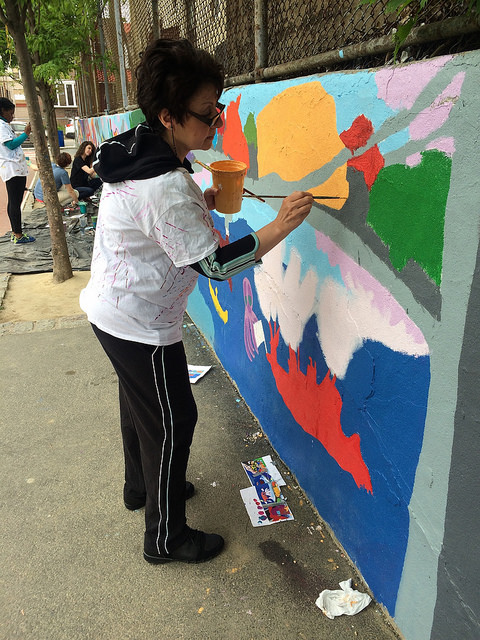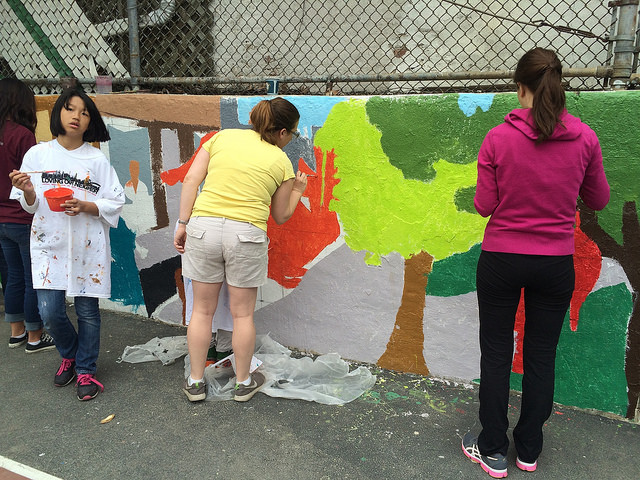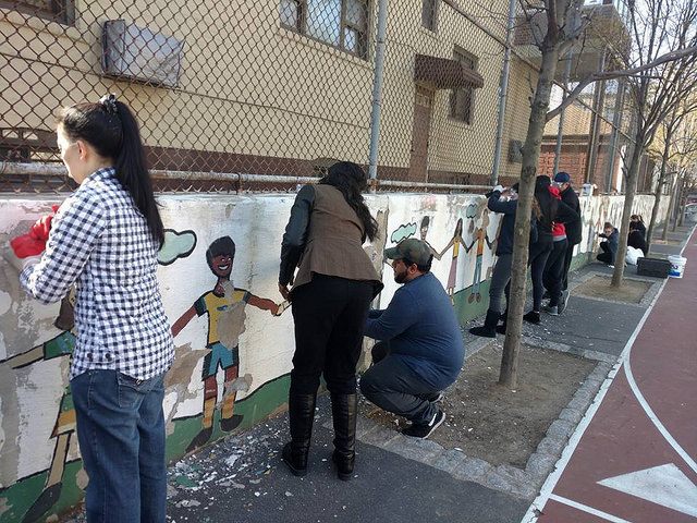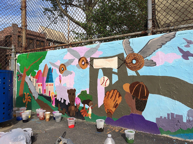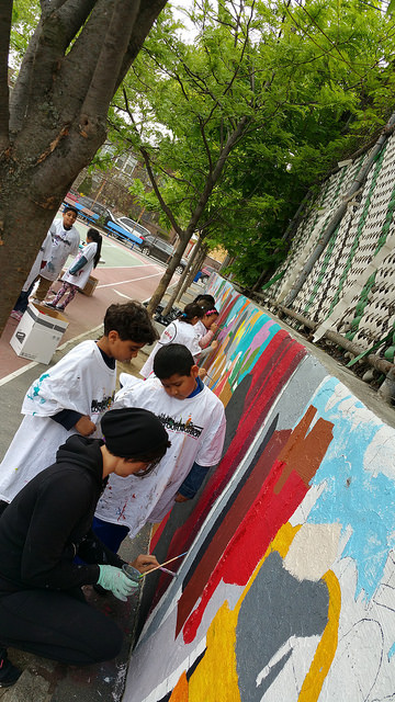 With support from the Immigrants Cultural Fund, Thrive Collective provided visual arts classes at PS 127 in the Dyker Heights section of Brooklyn that explored the school’s immigrant cultural diversity and collaboratively produced the I Am Brooklyn schoolyard mural. Our multidisciplinary arts education and social development programming began in February, and empowered students, parents, volunteers, and faculty at the school to design and execute a shared vision from April – June.