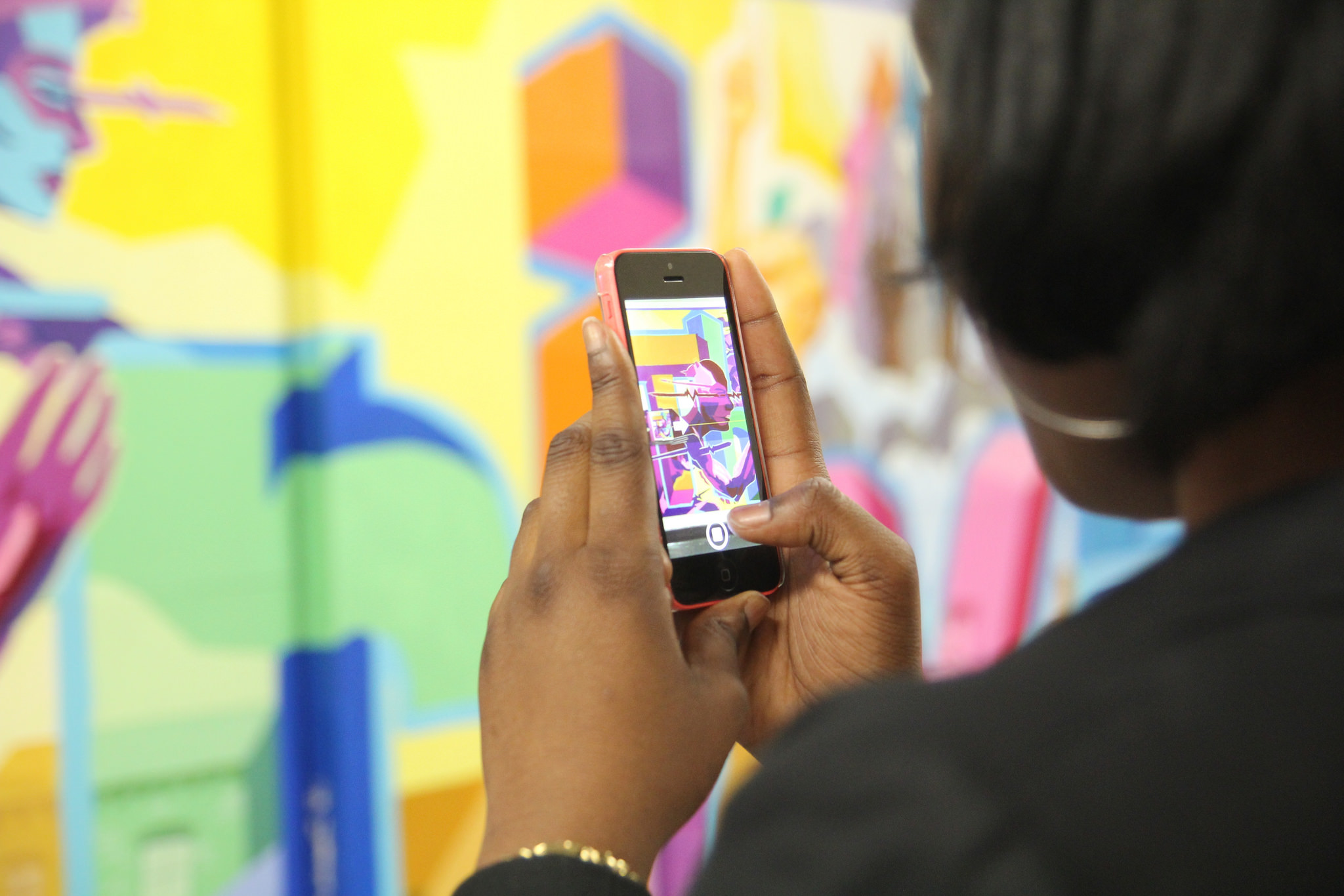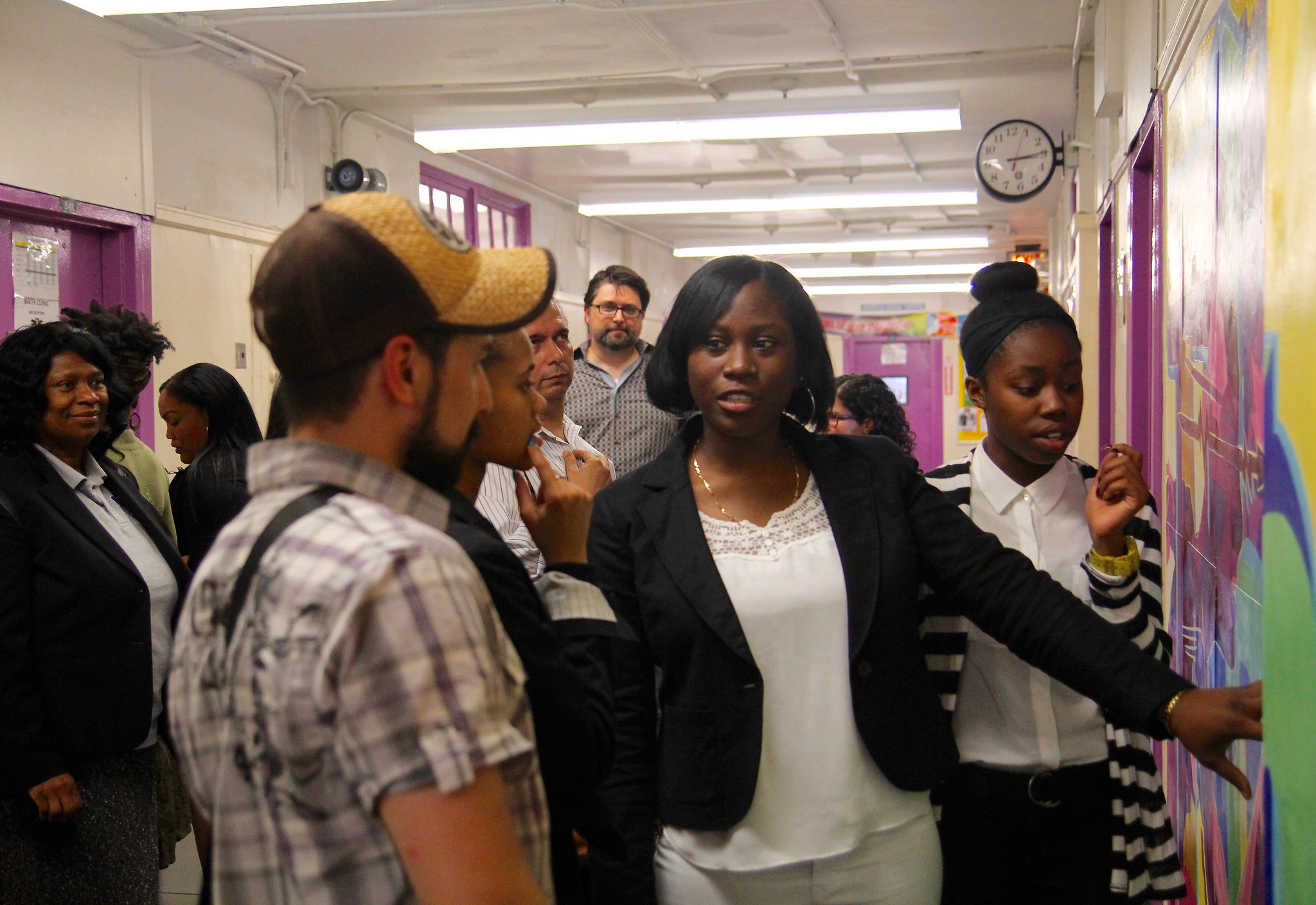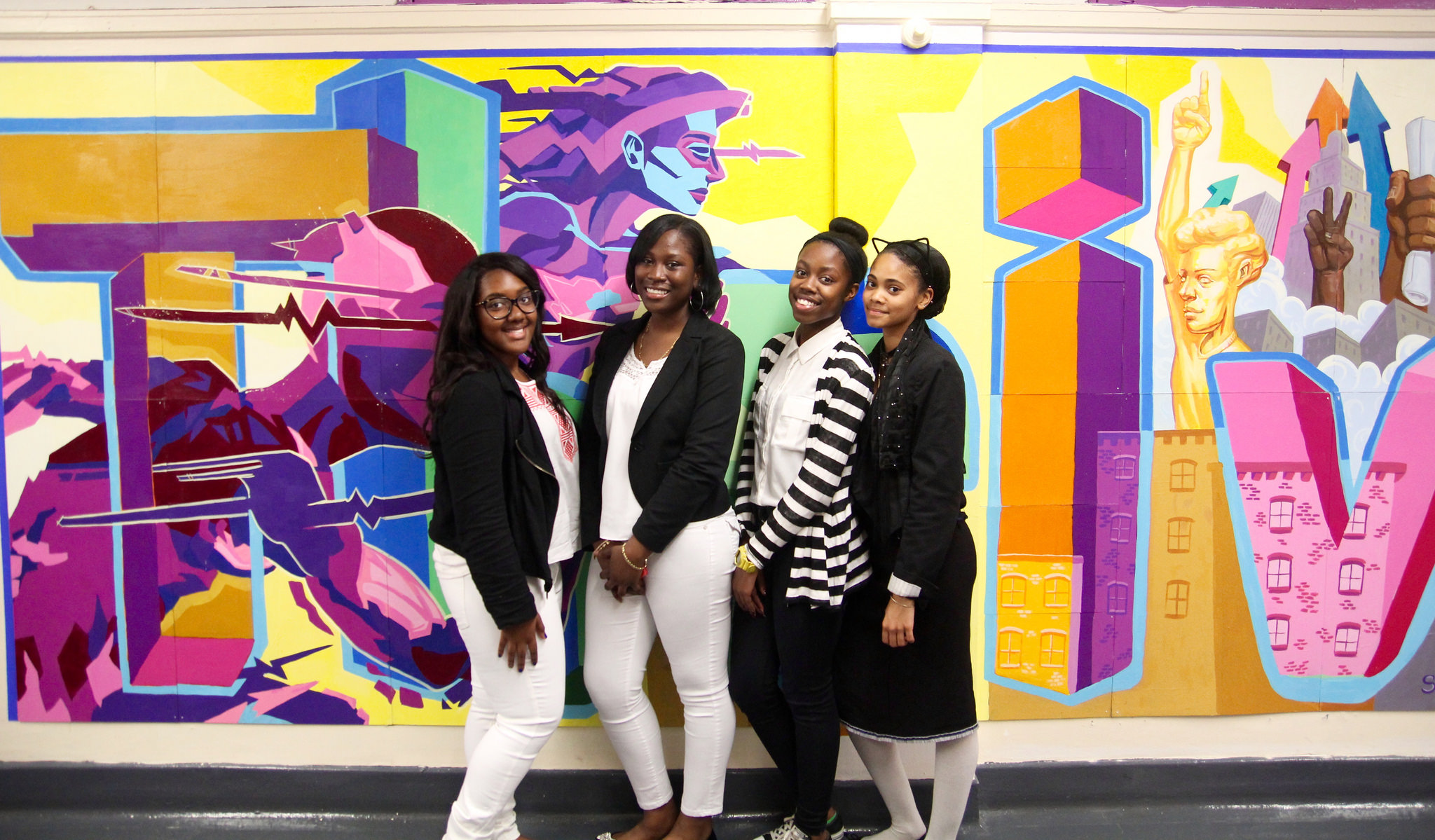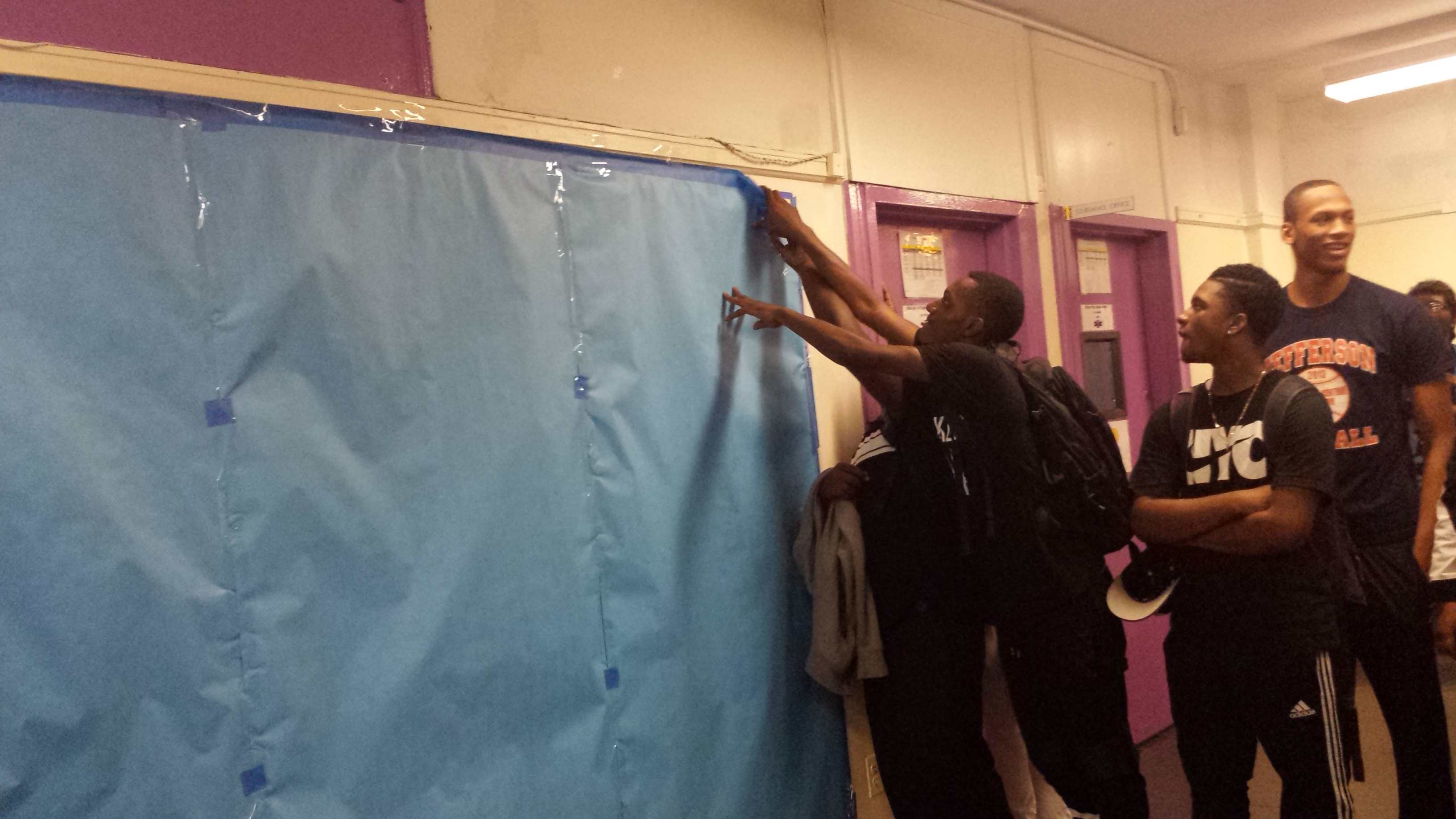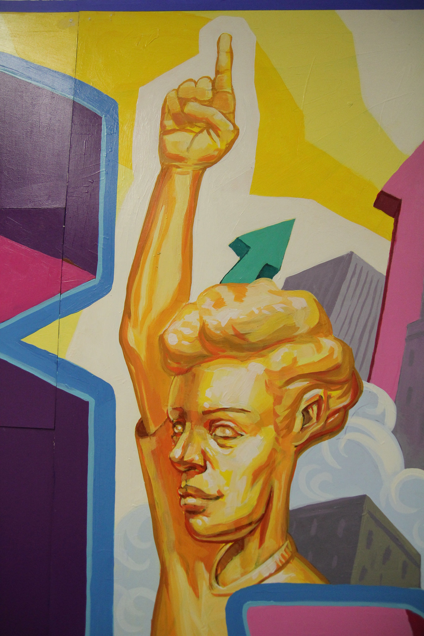 Thrive: East New York Thrive Series (3 of 6) Thomas Jefferson Educational Campus (Brooklyn 2015) • Art Direction & Teaching Artist: Kekoa • Interior lobby • 120 square feet • Acrylic on Gessobord • Collaborating schools: W.A.T.C.H. Academy High School & FDNY High School • 120 students in five art classes