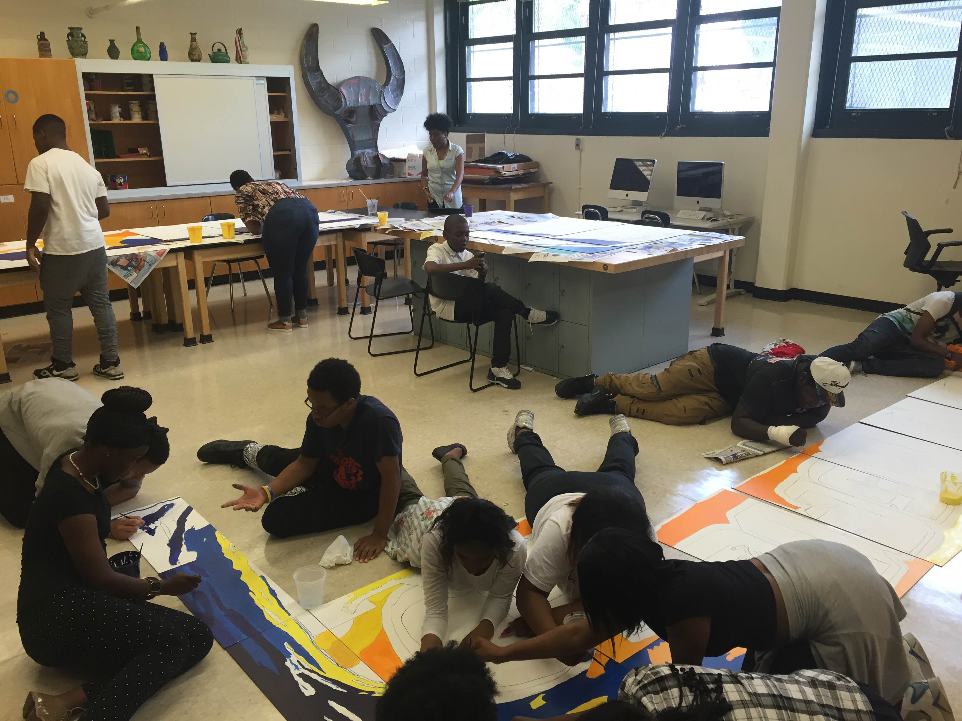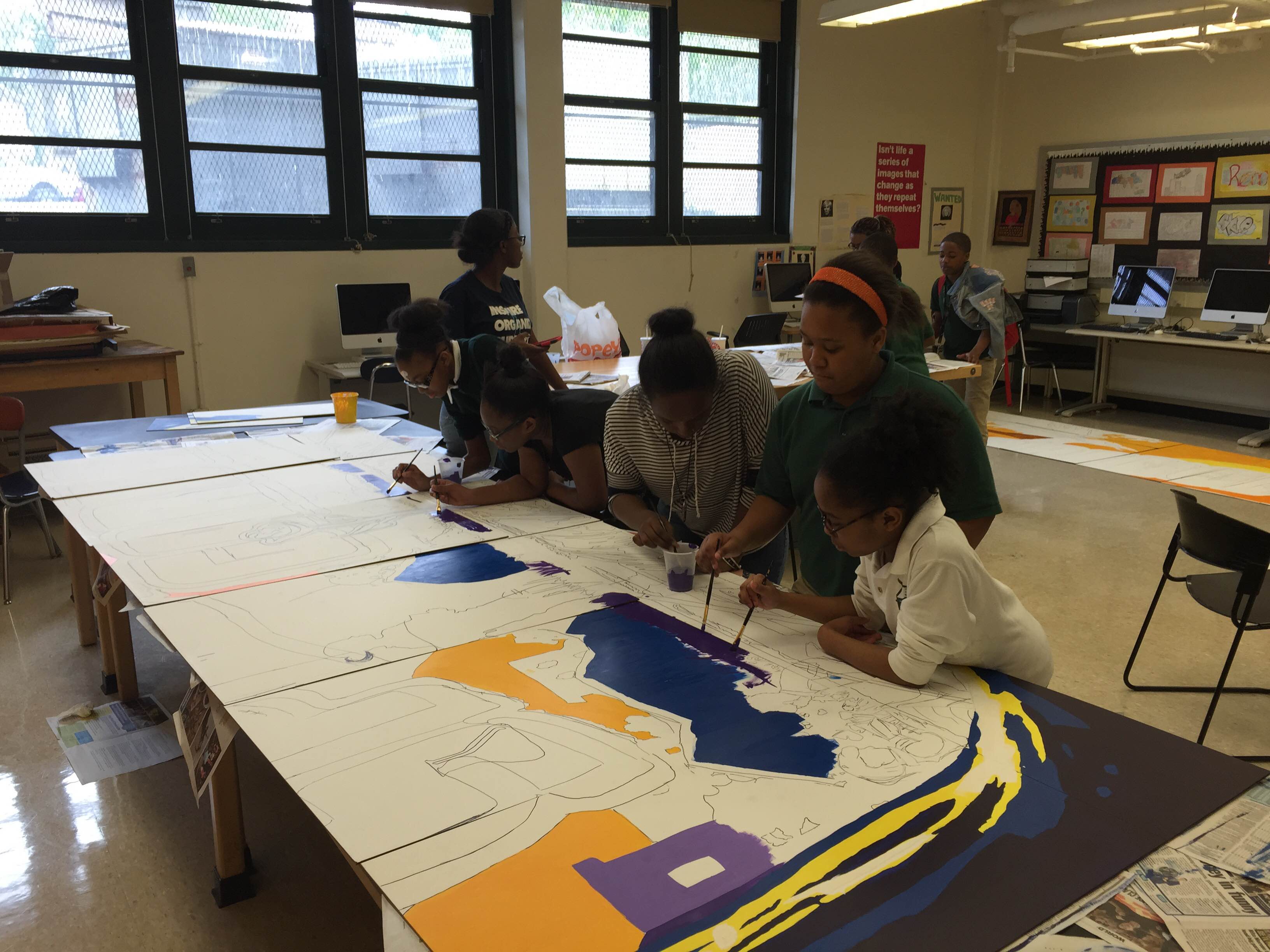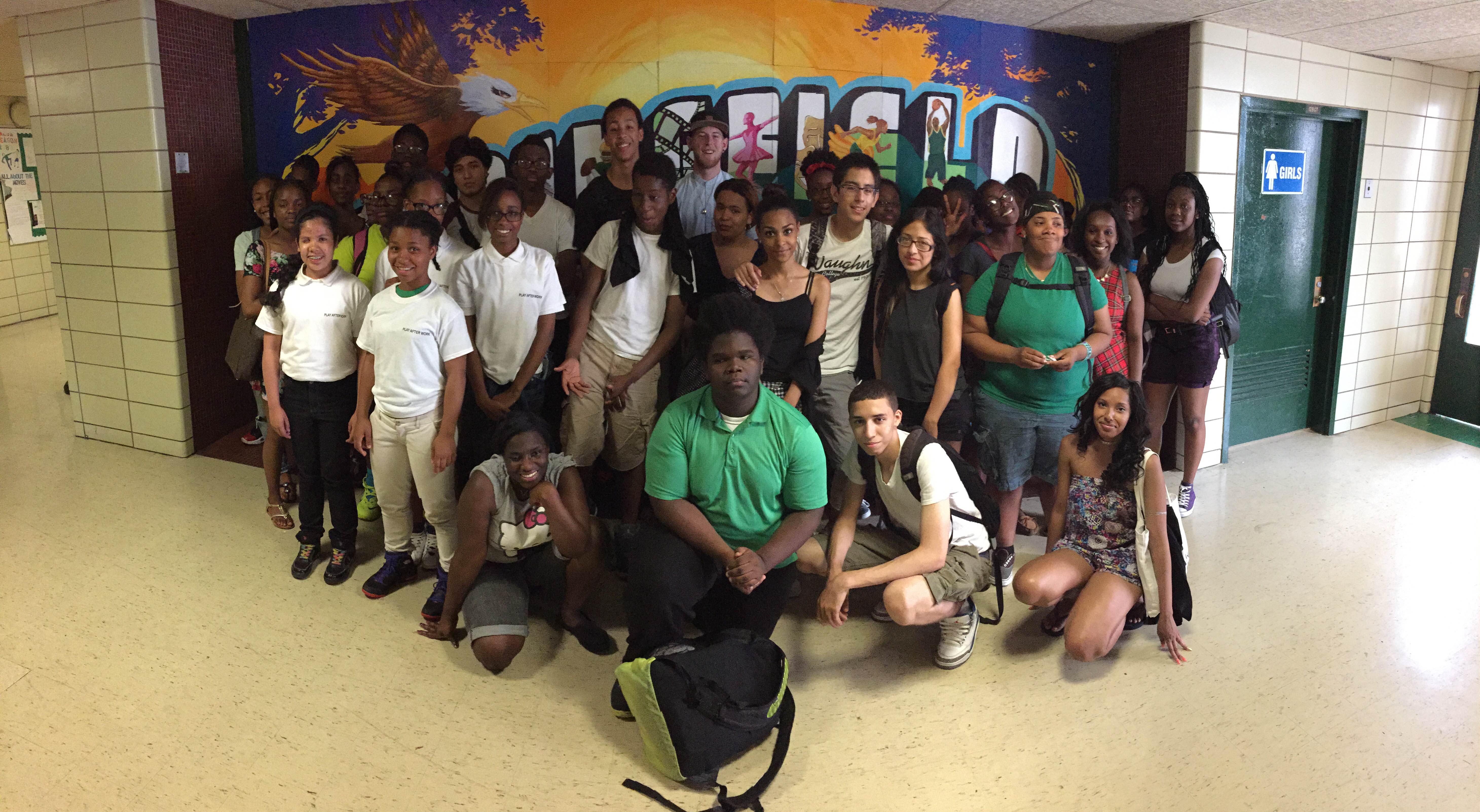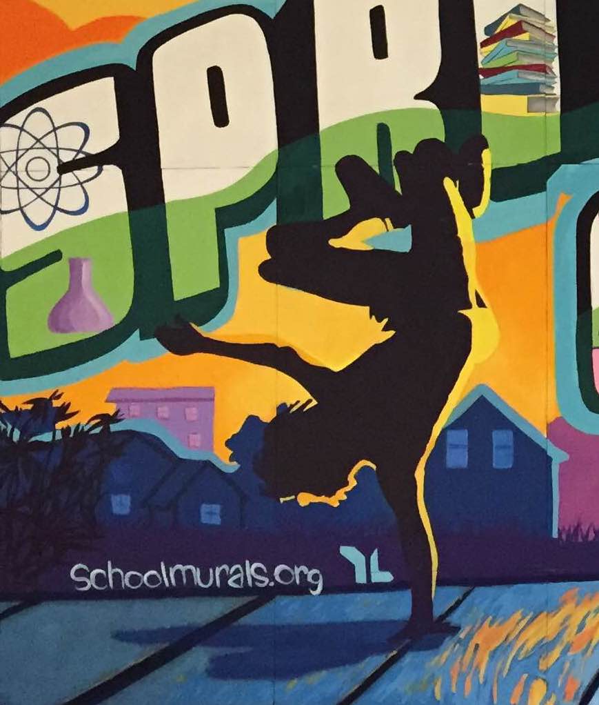 Thrive: Springfield Gardens Thrive Series (4 of 6) Springfield Gardens Educational Complex (Queens 2015) • Art Direction & Teaching Artist: Stephen Uhey • Interior lobby • 120 square feet • Acrylic on Gessobord • Collaborating schools: Preparatory Academy for Writers, Excelsior Preparatory Academy, George Washington Carver High School for the Sciences, and Queens Preparatory Academy • 100 students in four art classes and Thrive After School program