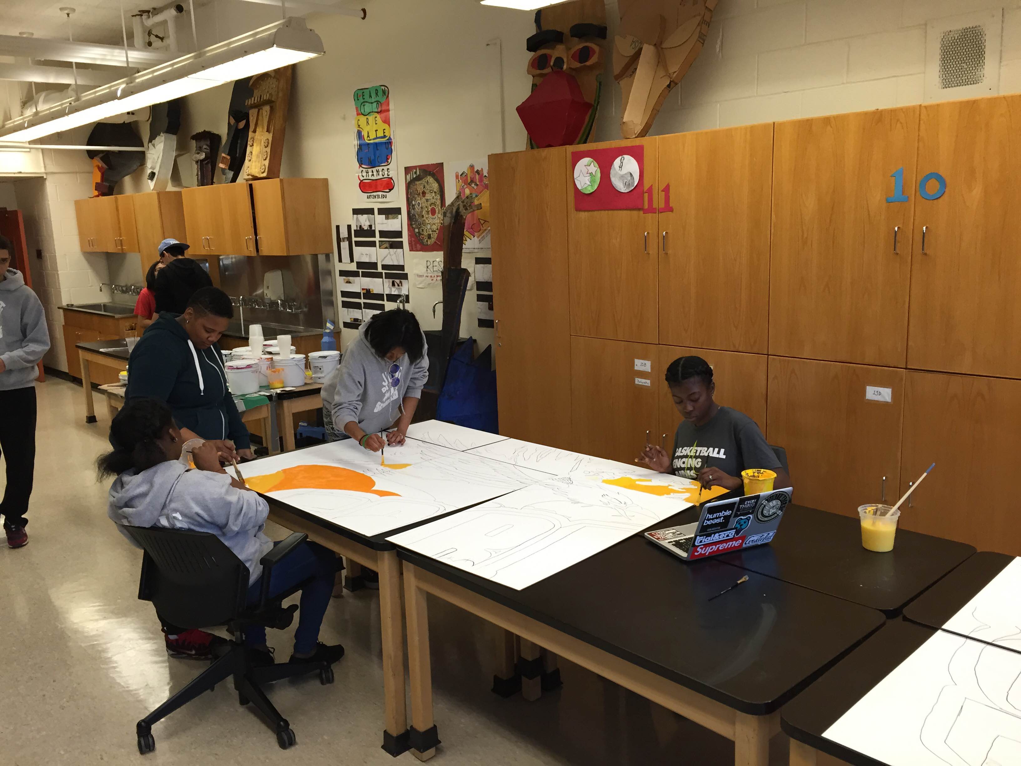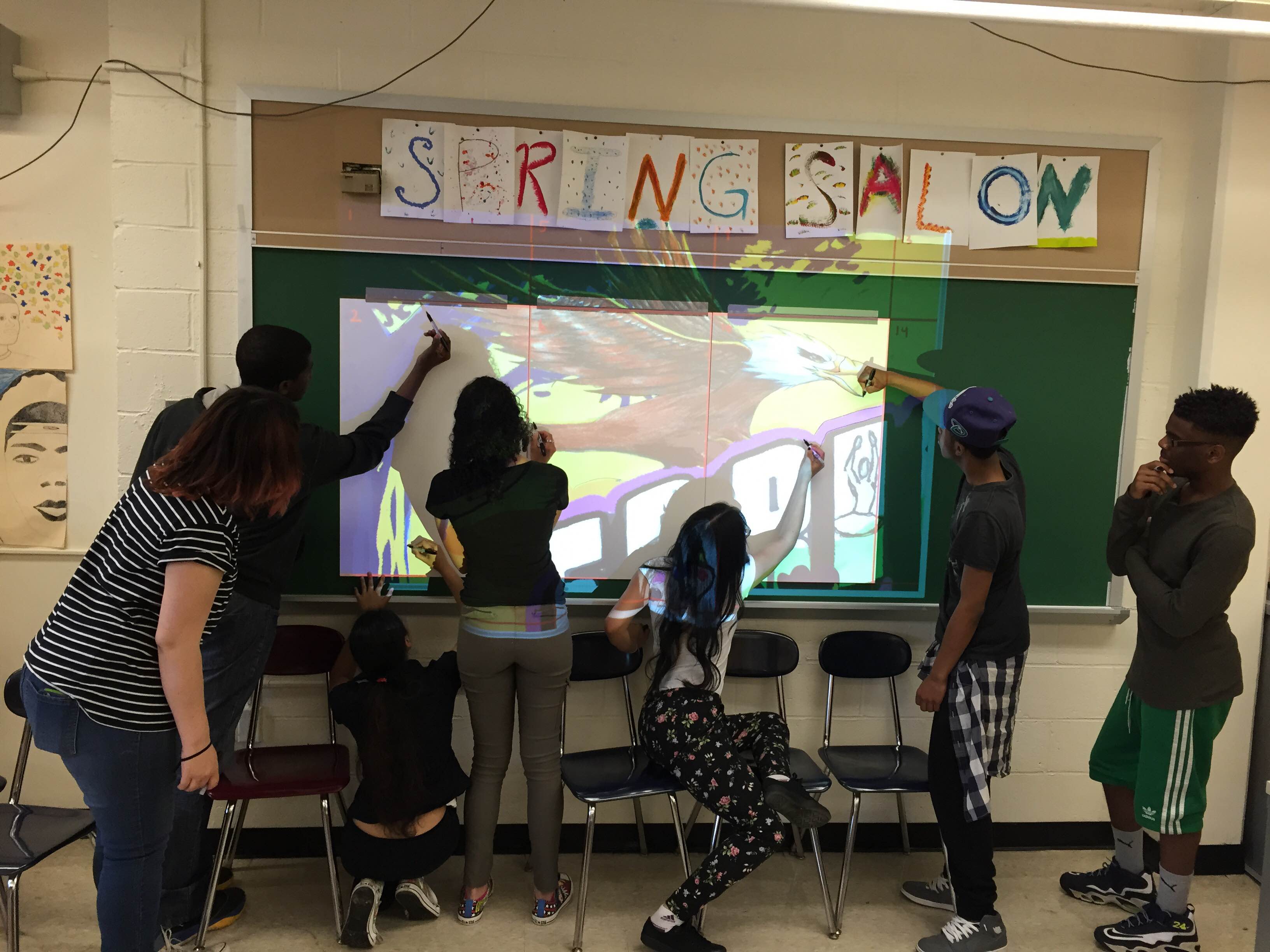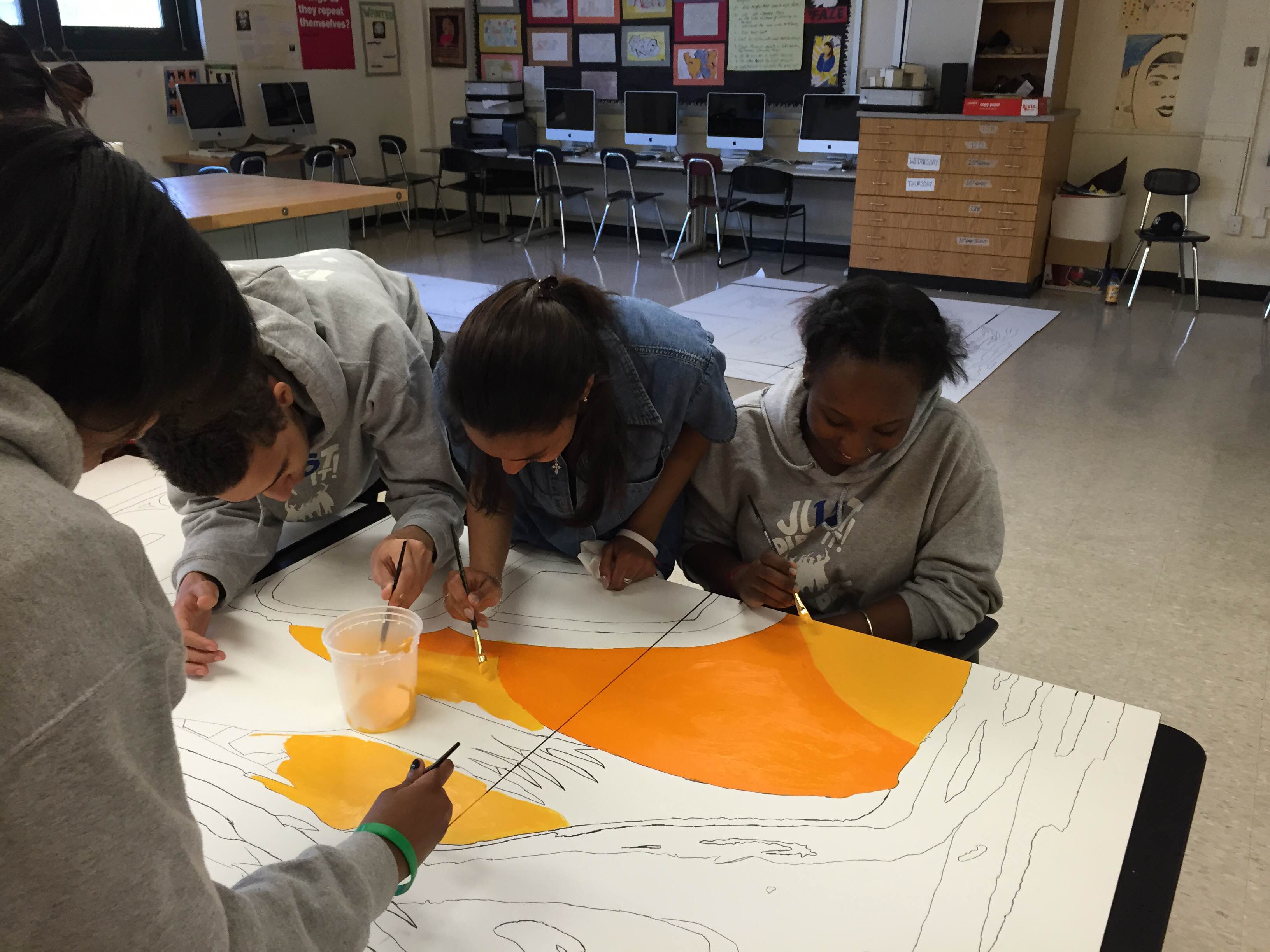 Thrive: Springfield Gardens Thrive Series (4 of 6) Springfield Gardens Educational Complex (Queens 2015) • Art Direction & Teaching Artist: Stephen Uhey • Interior lobby • 120 square feet • Acrylic on Gessobord • Collaborating schools: Preparatory Academy for Writers, Excelsior Preparatory Academy, George Washington Carver High School for the Sciences, and Queens Preparatory Academy • 100 students in four art classes and Thrive After School program