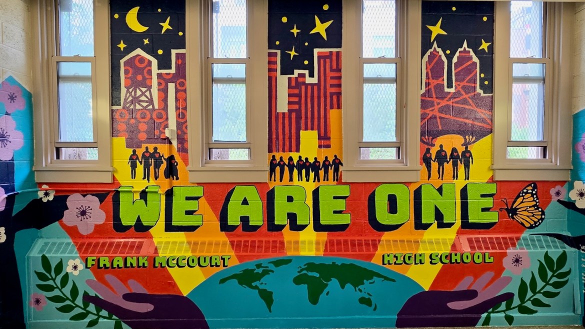 The “WE ARE ONE” mural was created by the students at Frank McCourt High School. During workshops, we explored community and collaboration, covering topics such as cultural roots, kindness, the use of color, and composition. This is how we arrived at this mural design, featuring the title “WE ARE ONE” in the central area. This…