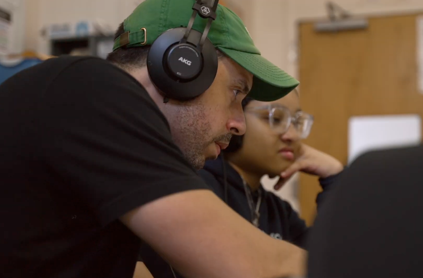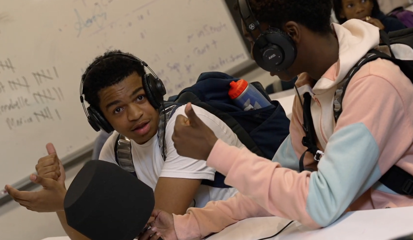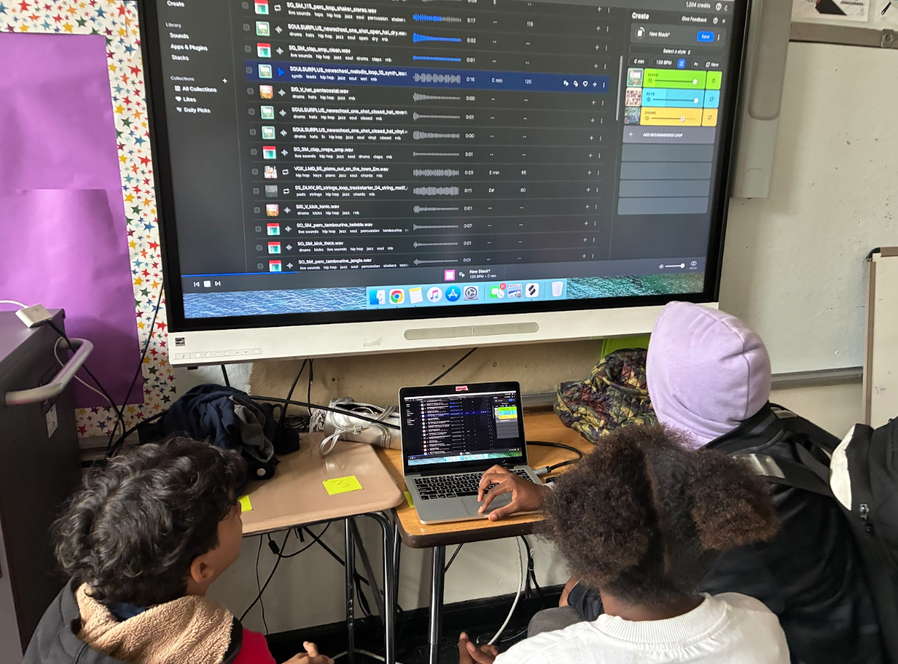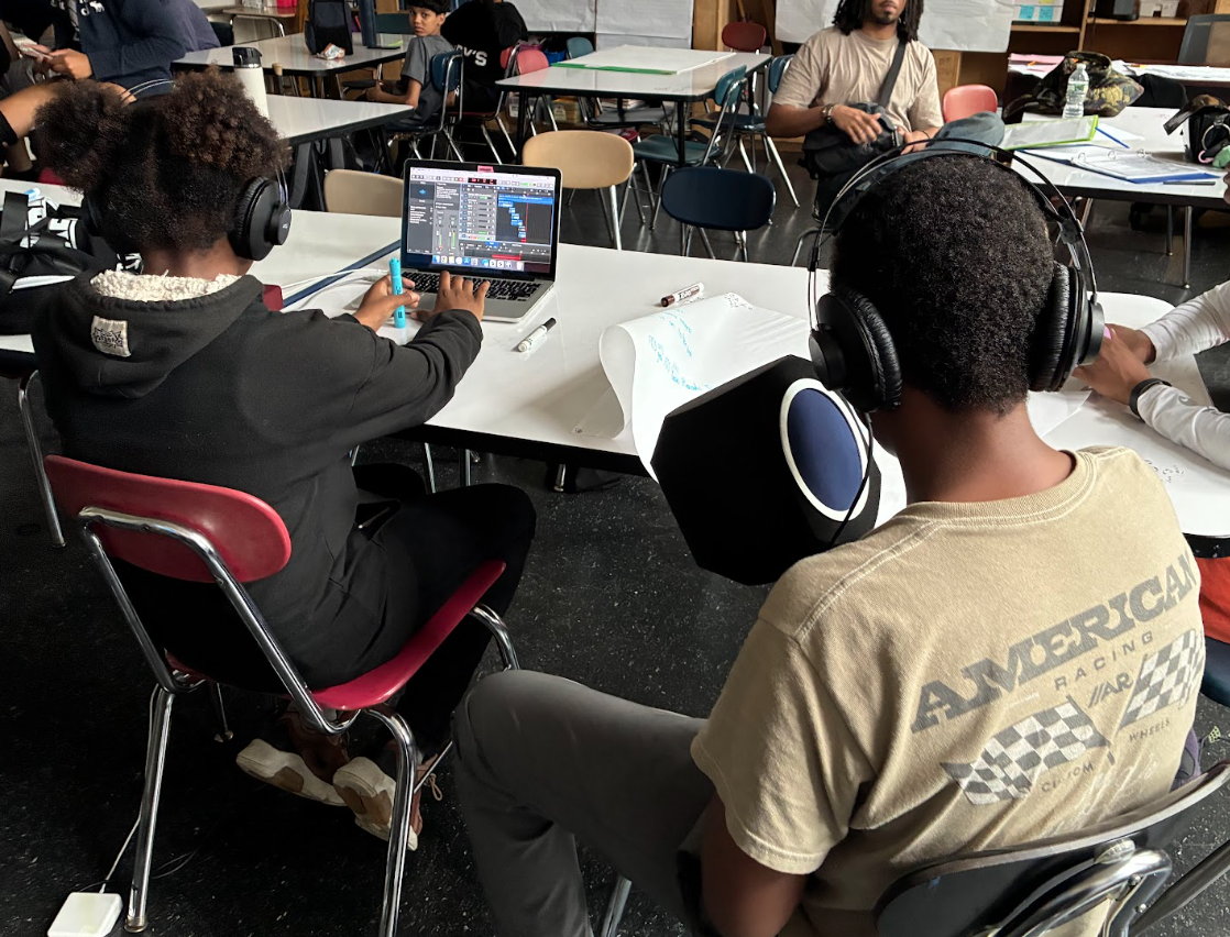 In addition to writing, producing and performing the song “Level Up” students learned to create beats using Splice (Splice Beat maker is a free online drum sequencer that allows you to build beats using sounds from the Splice Sounds library.) Students also practiced audio engineering using Logic Pro (Logic Pro is a comprehensive Digital Audio Workstation (DAW) (music production software) created by Apple for the Mac operating system, offering tools for songwriting, beat making, recording, editing, and mixing music.