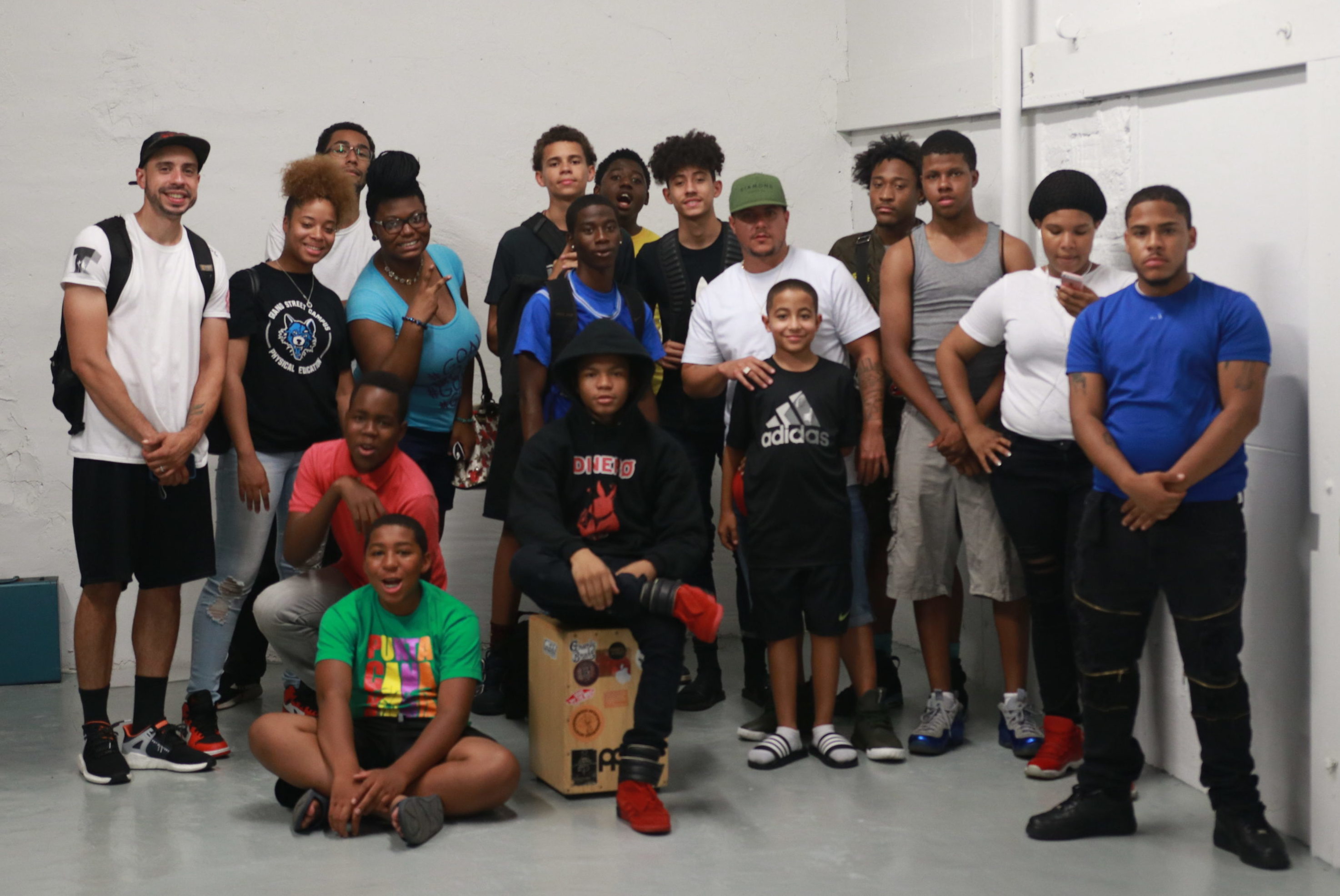 After lunch, we walked through Central Harlem along 125th Street to the 6 train. While on the subway, Randy freestyle rapped while playing his cajon Peruvian drum for the students and passengers alike. We reached our destination, and found Produkt Studios currently undergoing renovations for an expanded film studio. Randy’s good friend and Produkt engineer Joe helped us review the demo and decided that the new lyrics and Martin Luther King quote would be recorded today.